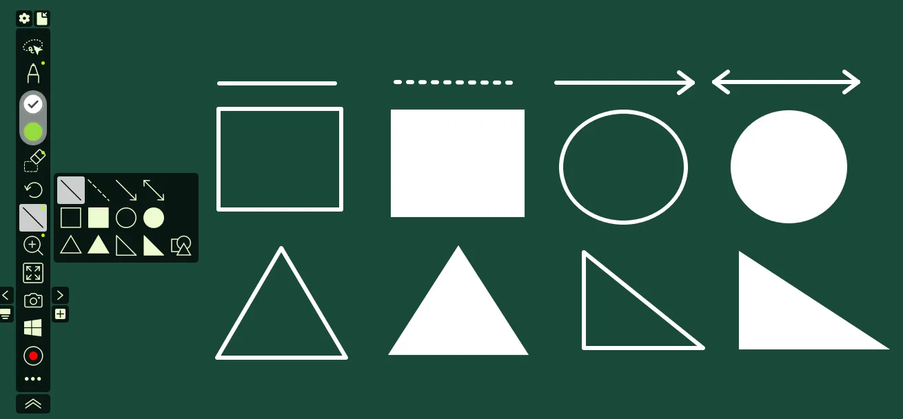 선, 점선, 화살표, 원, 사각형 등 각종 도형을 쉽게 그릴 수 있는 기능입니다.
