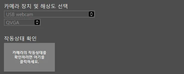 카메라 설정 및 작동상태 확인 : 녹화 전 사용할 카메라 장치와 품질을 선택할 수 있습니다. 네모박스를 클릭하여 카메라 작동 확인이 가능합니다.