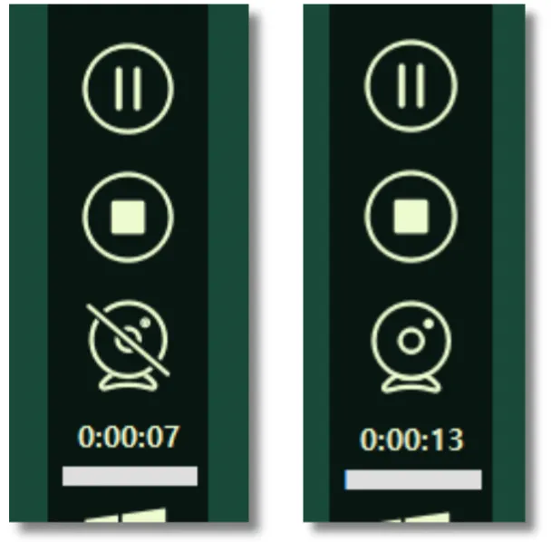스크린 녹화시 카메라 사용하기 : 스크린 녹화시 카메라를 기본적으로 사용할 것인지를 설정할 수 있습니다. 카메라는 필요에 따라 녹화중에 끌 수 있습니다. (녹화 중단 버튼 아래의 웹캠 아이콘을 조작하면 녹화중에 카메라를 켜고 끌 수 있습니다.)