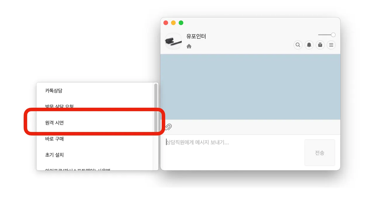 "카카오톡 유포인터 채널 추가 후 카톡으로 교육 신청" 통하여 요청을 하시면